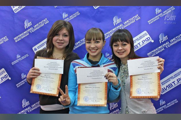 29 февраля в Воронежском институте высоких технологий прошла торжественная церемония вручения именных стипендии по итогам осеннего семестра 2011- 2012 учебного года. По традиции стипендиатами стали студенты, получившие наибольшую рейтинговую оценку. Рейтинговая оценка складывается из баллов, полученных студентом в течение учебного семестра. При подсчете учитывается активное участие в жизни вуза, в конференциях, семинарах, тематических кружках, олимпиадах и конкурсах, а также в спортивных и культурно-массовых мероприятиях. На церемонии присутствовали: депутат Воронежской городской Думы, основатель благотворительного фонда «Доброта» Александр Алексеевич Жуков, директор туристического агентства «Исида» Ульяна Кузнецова и ректор ВИВТ Игорь Яковлевич Львович.