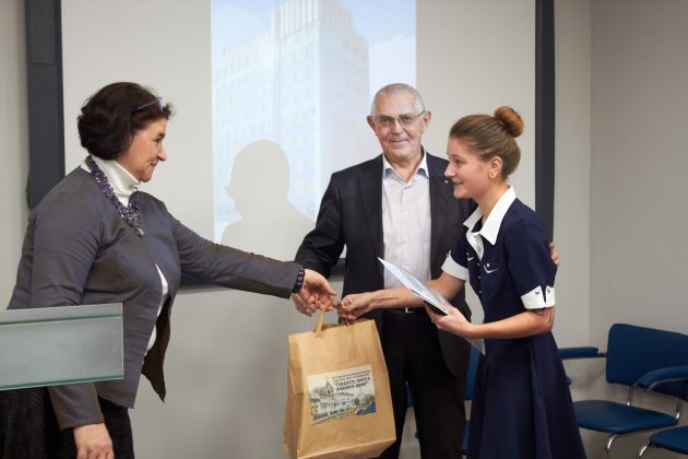 Победителей и призеров наградили дипломами и сладкими призами. Также участникам, занявшим первые места, и победителю ГРАН-ПРИ вручили символ Воронежского института высоких технологий «Пуговицу Знаний». Памятные подарки всем призерам и победителям вручила генеральный директор туристического агентства «Алые Паруса», член экспертного совета по туризму Ирина Александровна Чугунова. Учителя-наставники получили денежные премии.